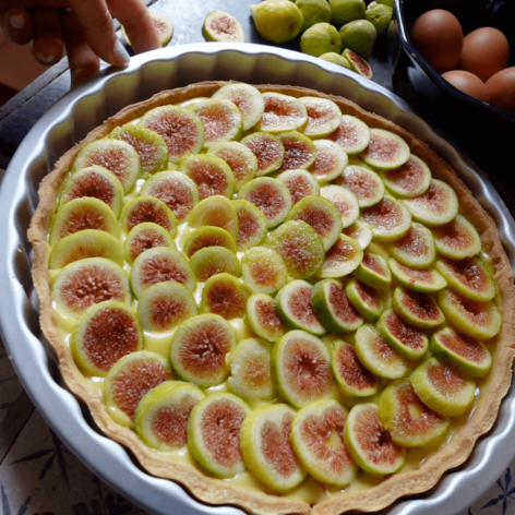 - Once all of the components are ready and cooled, you can begin assembling the tart. Begin by spreading about a 1cm layer of the jam/compote in the base of the tart. Give the custard a whisk to loosen it, then spread on top of the jam. Finish with the sliced figs and serve! Note: The tart can sit for a few hours but I wouldn’t leave it overnight as the pastry will soften. If you plan on pre-preparing it, you can brush the inside of the cooked tart with melted chocolate before assembling.